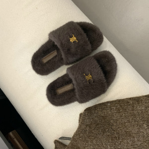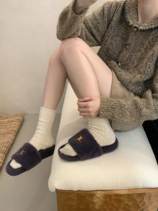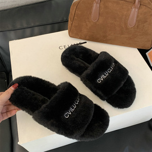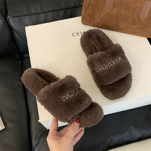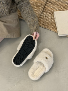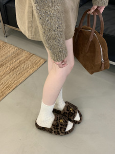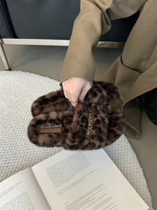 复古毛绒绒厚底一字拖2025新款百搭舒适保暖休闲外穿豹纹毛毛拖鞋