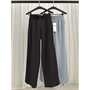 (源头工厂现货)ALO高腰条纹橡筋宽松显瘦阔腿裤