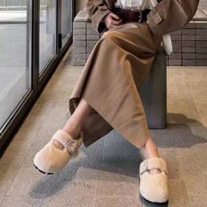 【周也同款】白色爆款包头羊羔毛毛拖鞋女外穿加绒棉鞋水钻勃肯鞋