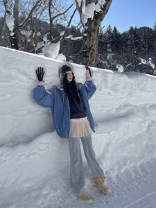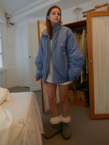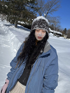 现 noconte*t蓝色棉服韩国设计师女装宽松落肩袖防水夹克韩系外套