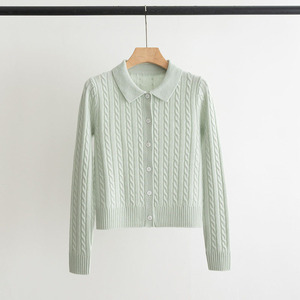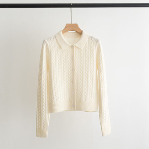 R美系羊绒羊毛混纺小马刺绣polo领针织衫女长袖外搭麻花毛衣开衫