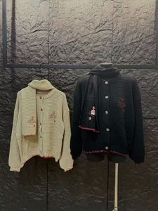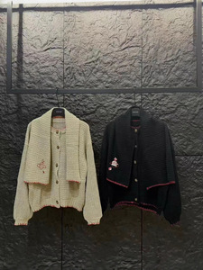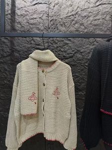 高品质~vivi土星刺绣毛衣开衫围巾毛混纺加厚粗线保暖针织衫外套