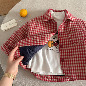 童装新款儿童秋冬外套2025男童格子衬衫长袖保暖衣宝宝棉衬衣韩版