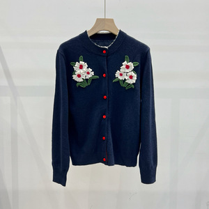 ER*S家 25秋冬新款 时尚通勤百搭立体花朵羊毛圆领长袖针织开衫