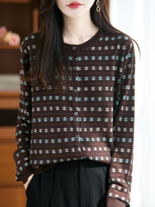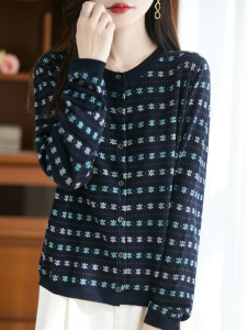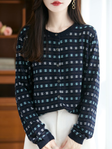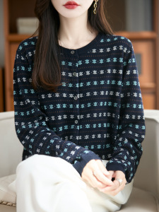 秋冬复古毛衣外套新款中年妈妈装长袖气质圆领重工雪花针织开衫