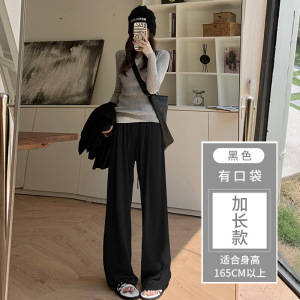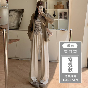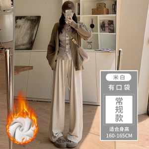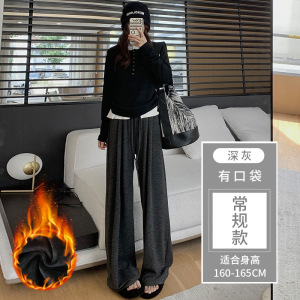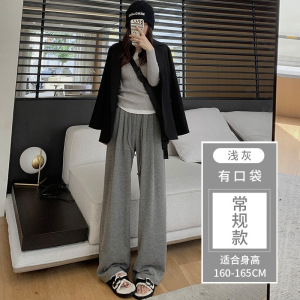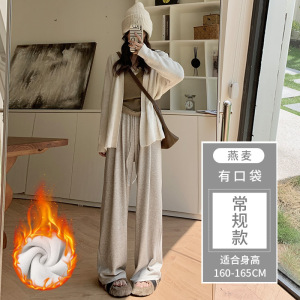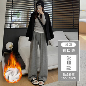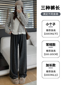 灰色糯米裤女春秋2025新款高腰垂感休闲小个子秋冬针织加绒阔腿裤