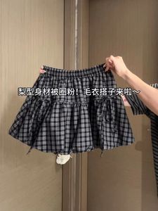 秋季新款韩版甜美减龄格纹花苞裙女松紧腰高腰显瘦防走光半身短裙