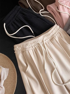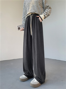 羊毛糯糯休闲裤女秋冬季加厚高腰显瘦显腿直垂感经线窄版直筒裤