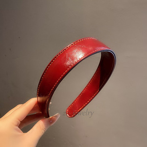 港风御姐红色皮质发箍女高级感新款头箍女复古气质pu压发发卡发饰