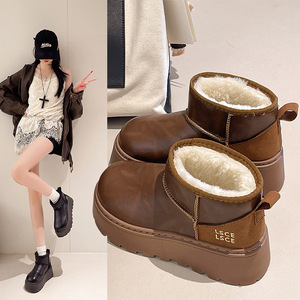 厚底防滑雪地靴女款2025新款冬季加绒加厚保暖马丁靴东北棉鞋短靴
