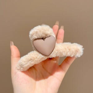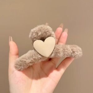1#深咖色毛绒爱心抓夹13CM