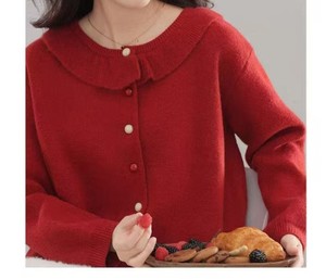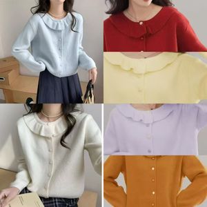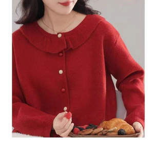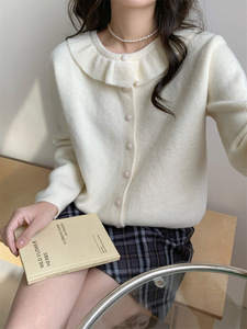 韩系学院风毛衣女温柔好看娃娃领宽松时尚外套甜美减龄针织开衫女