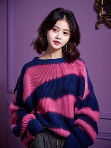今年流行秋冬欧货新款法式气质设计感慵懒宽松显瘦撞色条纹毛衣女