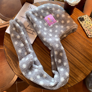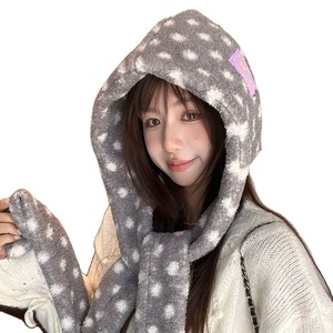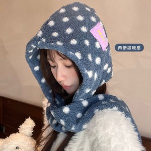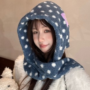韩版可爱波点连帽围巾一体女冬季保暖加厚防寒护耳包头帽针织帽潮
