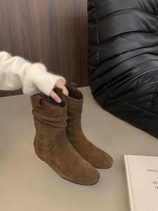 羊皮版~内增高勃肯鞋短靴女2025年新款秋冬法式复古堆堆靴马丁靴