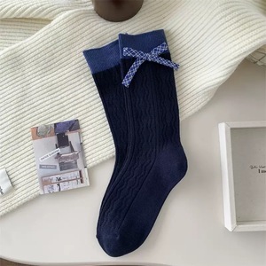 蝴蝶结袜子女秋勃肯鞋搭配袜子堆堆袜长袜中筒袜条纹袜子女花边袜