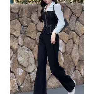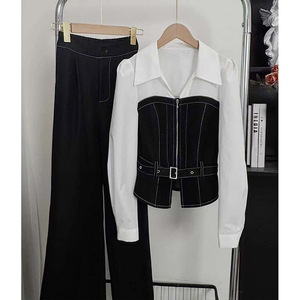 2025超火早秋新款一整套气质高级感简约大方得体仿牛仔衬衫套装裤