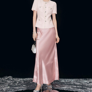 MandyZha人鱼姬法式重磅醋酸缎面粉色鱼尾半身裙女气质垂感裙子