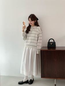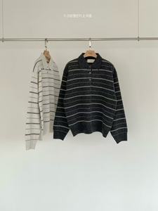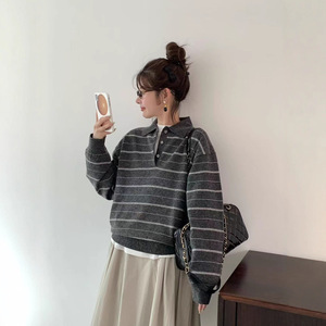 7t 韩国EGG东大门2025秋季新款经典条纹慵懒风POLO条纹针织衫女