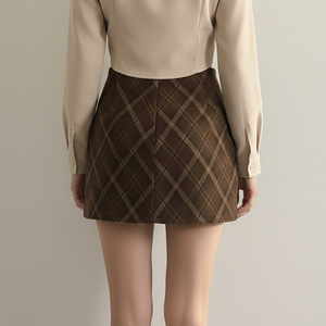 美拉德色系高腰格子半身裙女秋冬新款复古格纹包臀裙短裙A字裙子