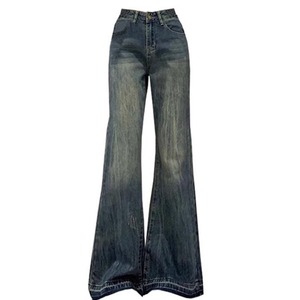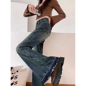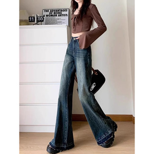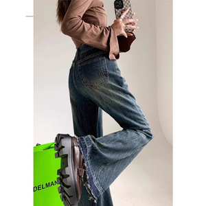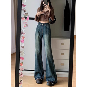复古蓝微喇直筒牛仔裤女秋冬季大码胖妹妹高腰显瘦梨型阔腿牛仔裤