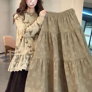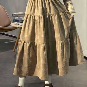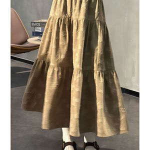 高级感复古提花松紧腰不规则半身裙女秋冬高腰显瘦洋气A字长裙