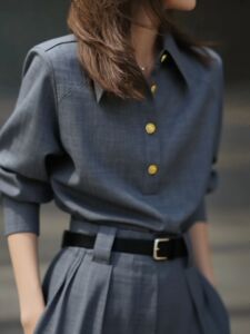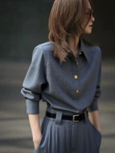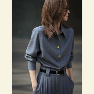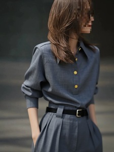 早秋穿搭一整套干练气质清冷贵气感重要场合漂亮蓝色衬衫套装裤子