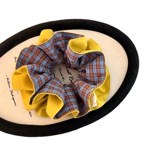 韩系黄色格子大肠发圈女高级感扎头发超大丸子头慵懒风头绳发饰
