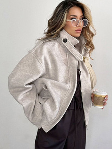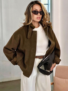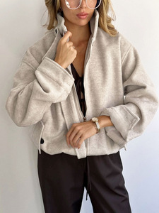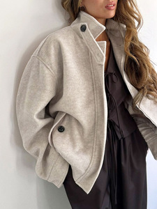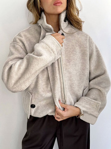 韩系拉链短款毛呢外套女秋冬新款宽松呢子上衣设计感气质时尚跨境