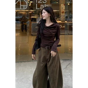 深圳南油早秋独特超好看气质轻奢高端小香风咖色T恤阔腿裤套装女