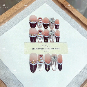 黛月达 纯手工穿戴甲圣诞节新款圣诞夜法式气质猫眼款美甲贴片