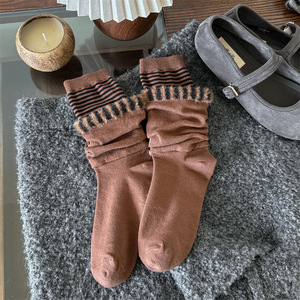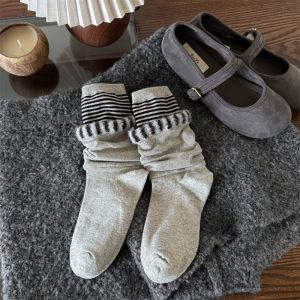 双层拼接喇叭袜经典流行款潮袜堆堆袜时尚洋气条纹外穿中筒棉袜