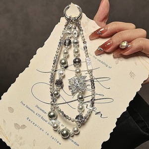 高级感镶钻蝴蝶手机挂绳招财纳福大华珍珠手机链挂件串珠手提双链