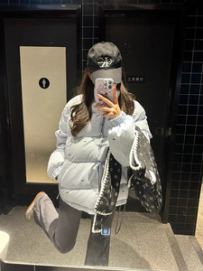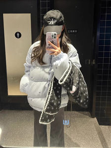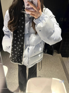 条纹蝴蝶结棉服外套女2025新款冬季小个子棉衣面包服加厚保暖棉袄