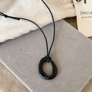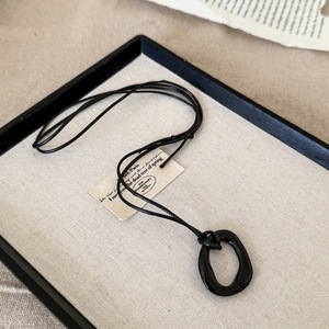 韩国博主同款黑色几何吊坠项链女百搭小众设计颈链长款秋冬毛衣链