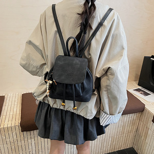 跨境复古学院风少女双肩包包新款网红字母文艺水桶多用小背包外贸