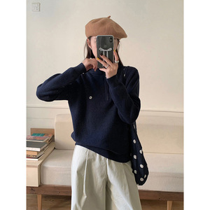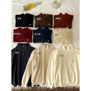 毛衣女秋冬半拉链设计感翻领针织衫慵懒气质高领打底长袖宽松外穿
