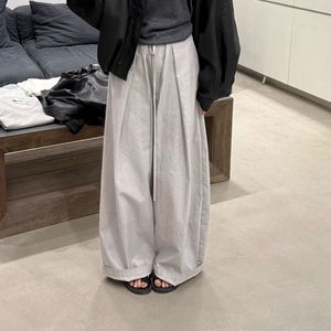 韩系高腰简约弯刀设计休闲裤女2025秋季新款遮跨显瘦百搭阔腿裤新