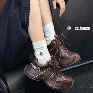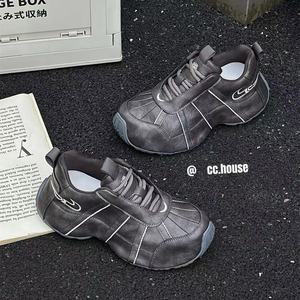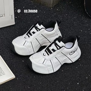 2025新款真皮女鞋厚底增高老爹鞋超轻松糕鞋百搭运动休闲鞋ins潮