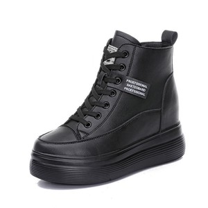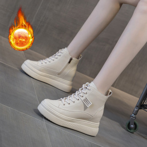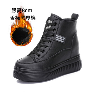 2025秋冬季女鞋新款坡跟厚底松糕高帮鞋小个子内增高休闲鞋短靴女