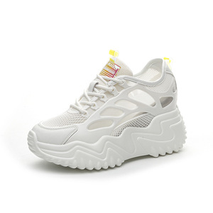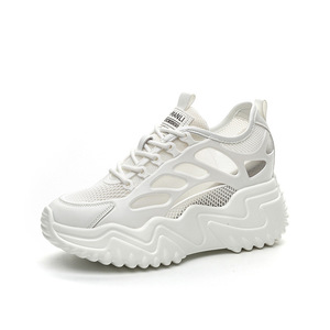 潮流星期天夏季女鞋新款厚底坡跟松糕内增高跟休闲运动网鞋洞洞鞋