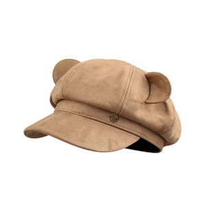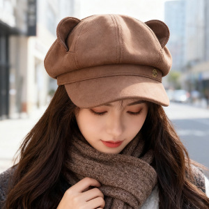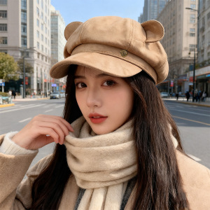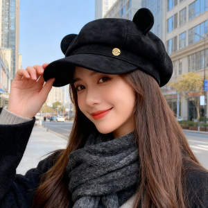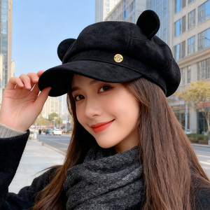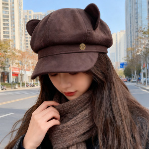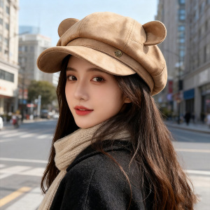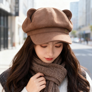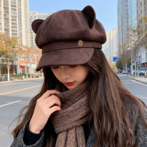 2025秋冬新款麂皮绒贝雷帽女复古显脸小八角帽百搭可爱画家帽子潮