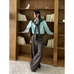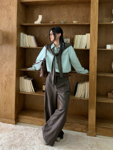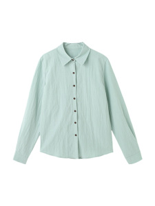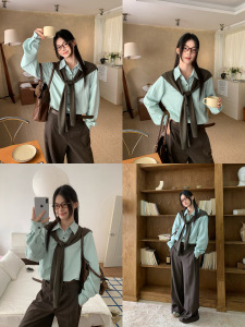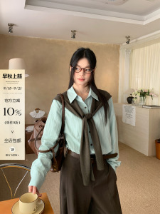 宋正恩绿色宽松衬衫女秋季新款纽扣设计休闲上衣穿搭时尚长袖
