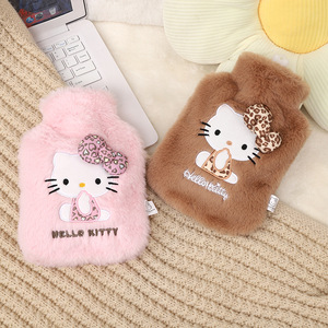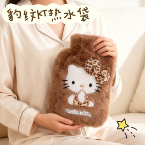 正版授权豹纹KT注水式热水袋可爱加厚灌水防爆女生热敷肚子暖水袋