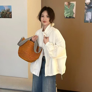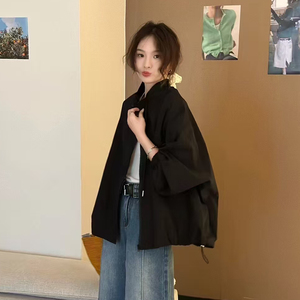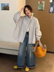 韩版立领宽松显瘦夹克外套女2025秋季新款休闲搭抽绳冲锋衣上衣