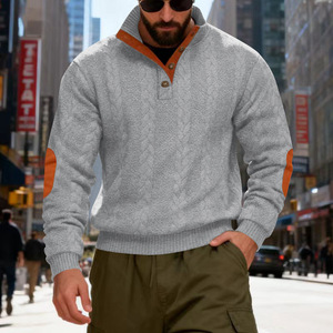 2025跨境亚马逊美式秋冬男士宽松重磅肌理纹潮流立领亨利补丁卫衣