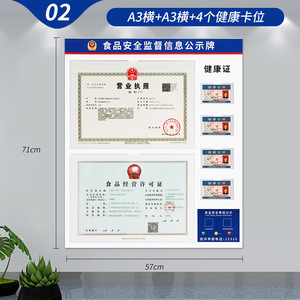 食品安全信息公示栏营业执照框架挂墙三合一卫生健康许可证展示板