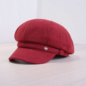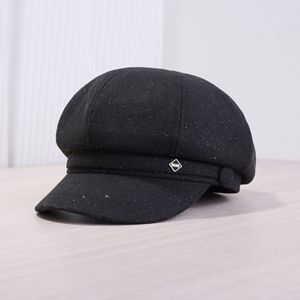 2025闪亮英伦鸭舌八角帽子女秋冬季日系复古大头围显脸报童帽