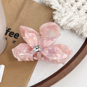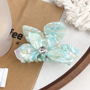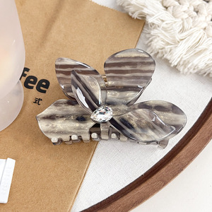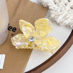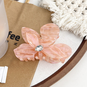 2025新款轻奢质感醋酸发夹高级感花朵镶钻抓夹女盘发鲨鱼夹发饰