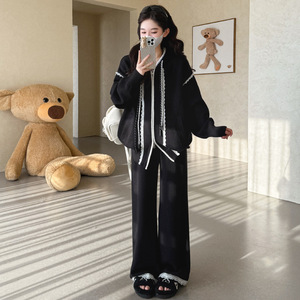 2025秋冬新品孕妇套装拼接蕾丝拉链连帽阔腿裤韩版孕妇套装